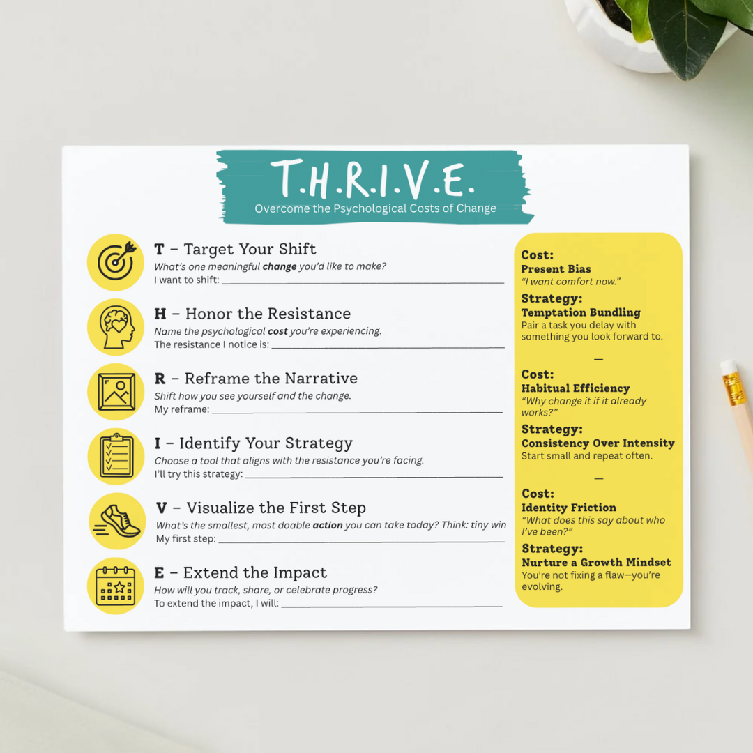 A simple tool to help us overcome resistance and take action on meaningful change. You can print as is or make a copy of this Canva file and customize!