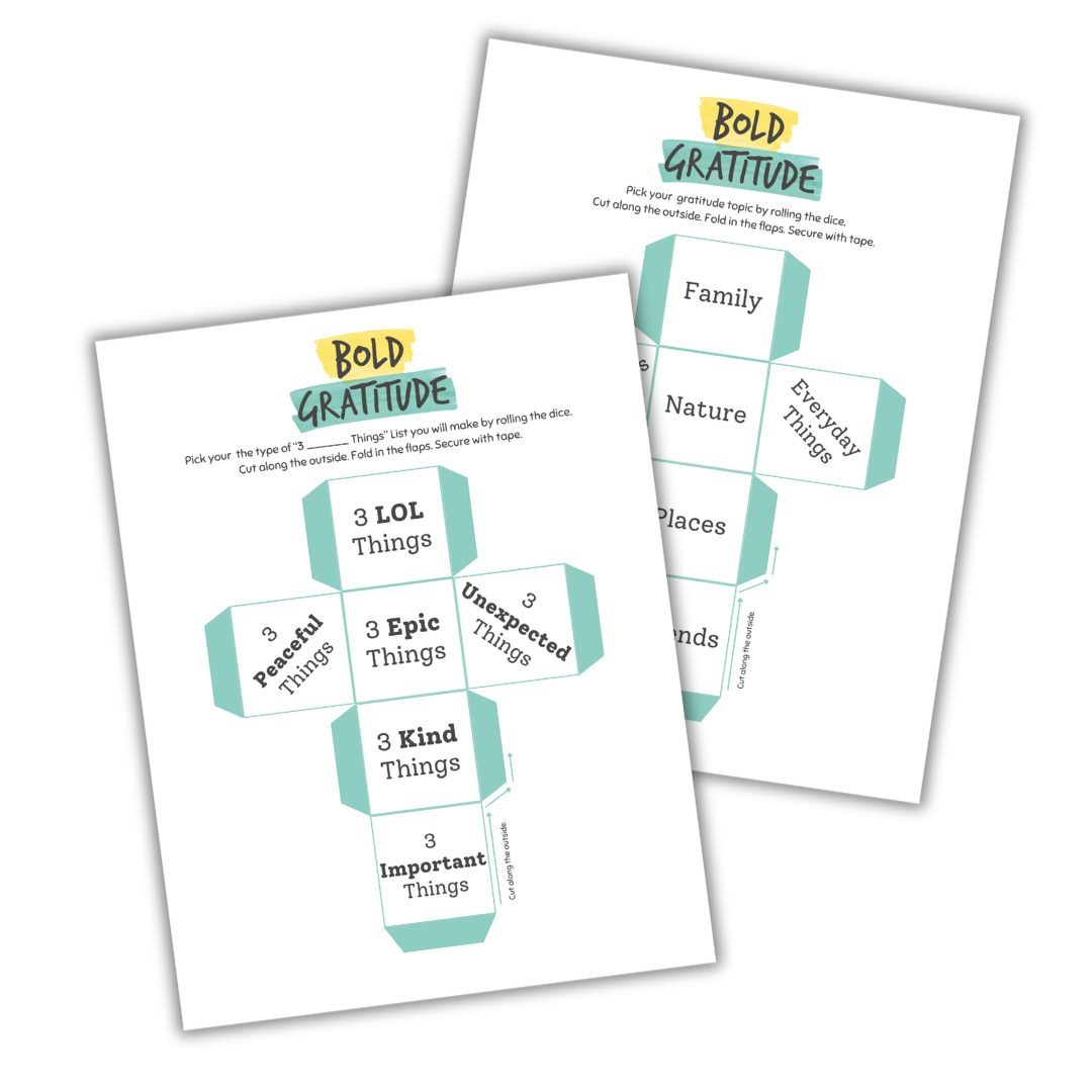 Two different DIY dice gives you 36 unique prompts! They can be used separately or combined for a gratitude practice that challenges you to be even more specific in noticing the good.